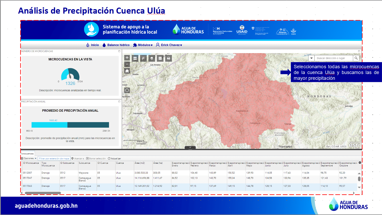 Con el apoyo de USAID, COSUDE y CGIAR, esta alianza pone a disposición del público la plataforma Agua de Honduras, que ofrece información obtenida de análisis hidrológicos y los combina con información de escenarios sobre clima presente y futuro, coberturas vegetales y demanda hídrica, facilitando la toma de decisiones sobre el manejo del recurso hídrico en microcuencas, subcuencas y cuencas.